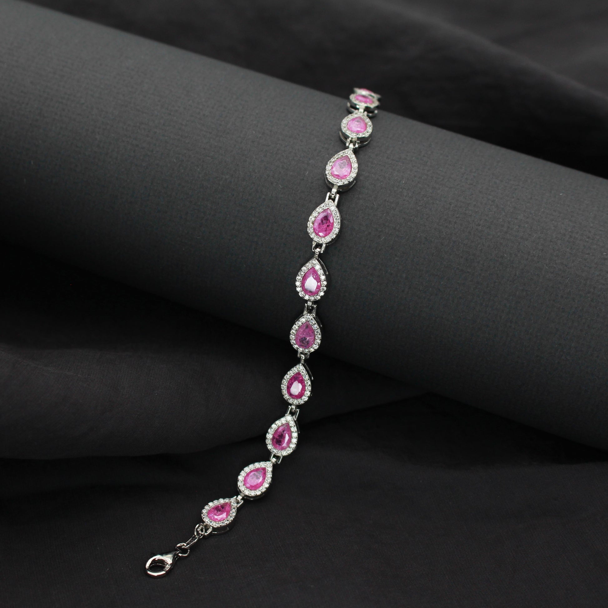 Romance finds its way to your wrist with the Blush Bloom Bracelet — featuring soft pink teardrop stones paired with glistening zircon. The feminine tones and radiant sparkle bring out the gentle, graceful goddess in you. A lovely gift or indulgence for weddings, date nights, or celebrating self-love.