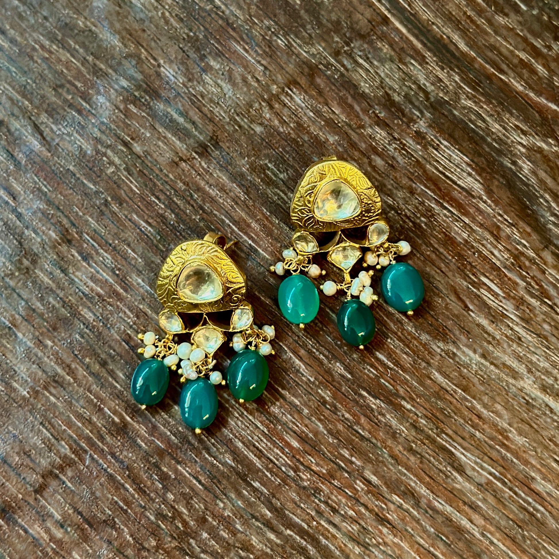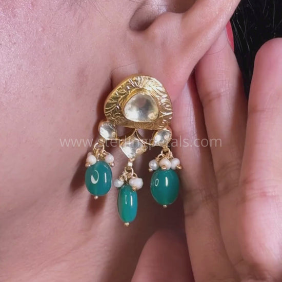 Drape yourself in luxury with these elegant crystal cascade earrings, featuring multiple layers of sparkling uncut Kundan stones. Ideal for evening glamour.