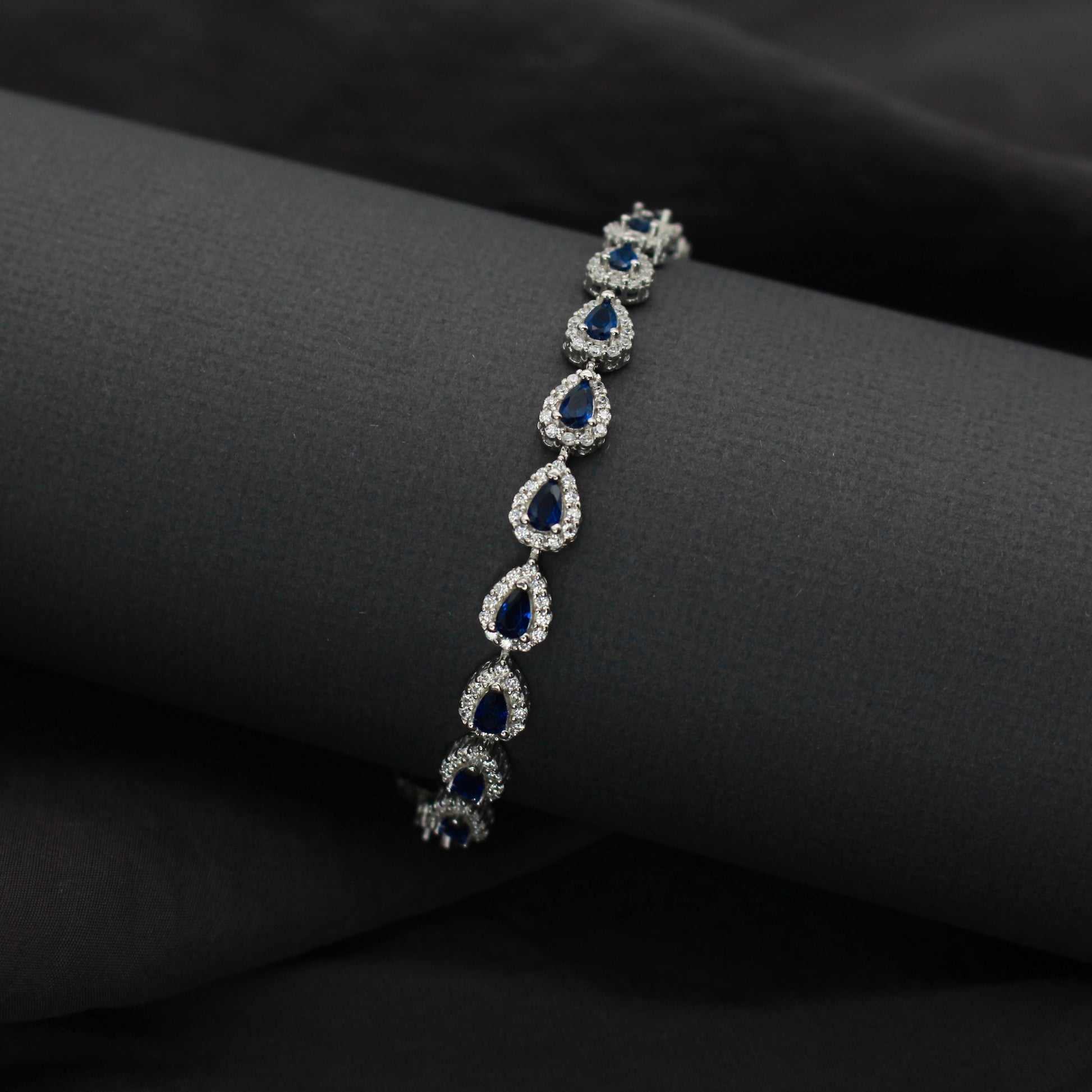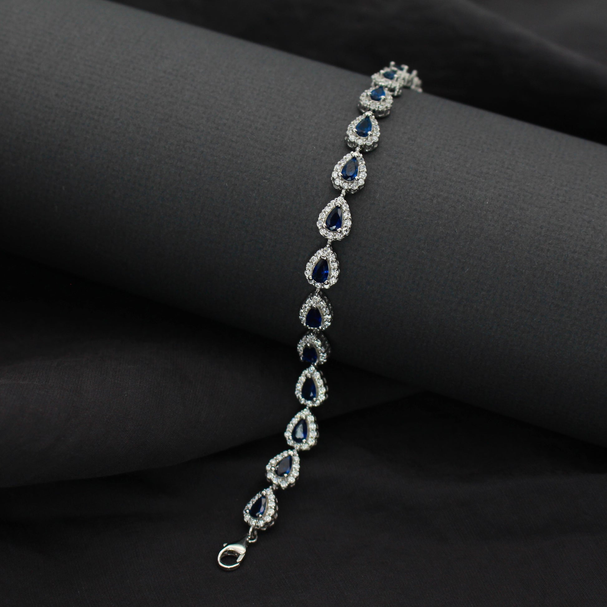 Let your nights sparkle with the Midnight Drop Bracelet — adorned with deep sapphire blue teardrops surrounded by shimmering crystals. A classic contrast that radiates elegance, mystery, and poise. This bracelet is perfect for evenings under the stars, black-tie events, or that one outfit that needs just the right hint of blue.