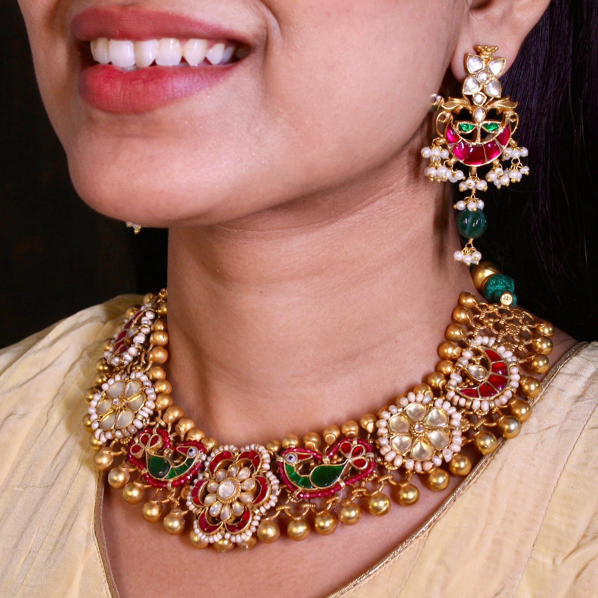 ✔ Encrusted with uncut kundan and pearl accents