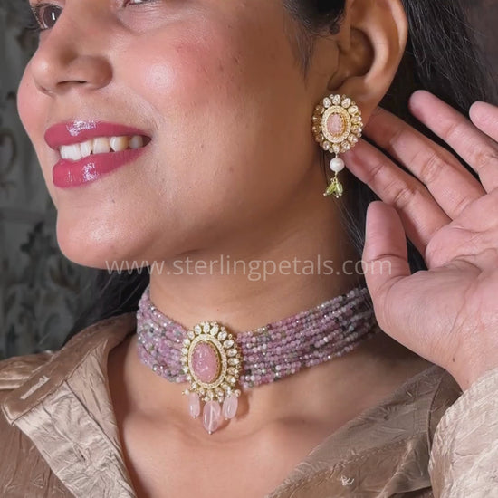 Vibrant Morganite Gemstone Choker with Uncut Polki Centerpiece